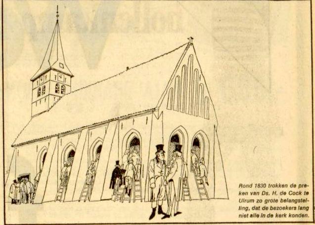 Rond 1830 trokken de preken van Ds. H. de Cock te Ulrum zo grote belangstelling, dat de bezoekers lang niet alle in de kerk konden.