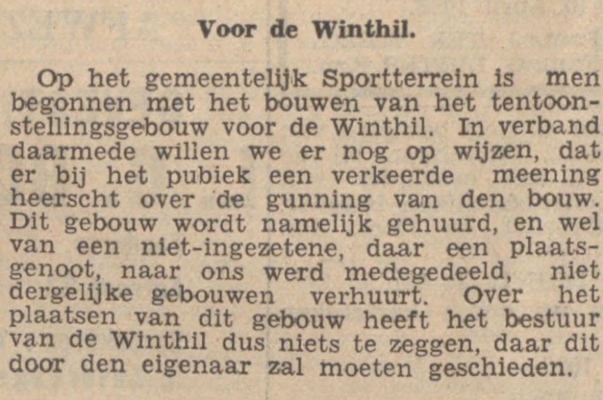 Het feit, dat op enkele stands na, het geheele terrein en alle gebouwen bezet zijn, bewijst reeds, dat men geen vrees voor een debacle behoeft te hebben en dat de Winthil een waar succes zal worden.