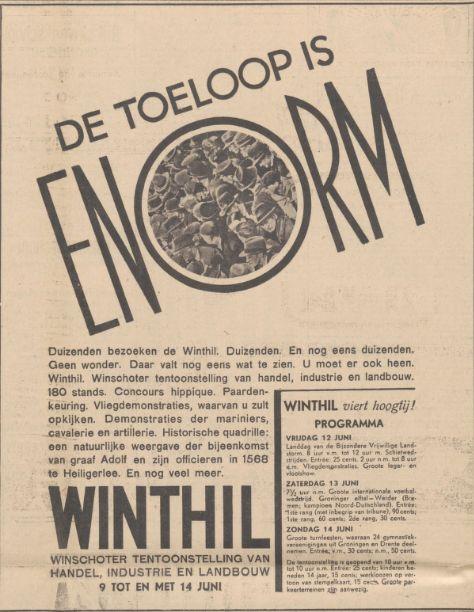 De Winthil belooft een evenement te worden voor het Noorden onzer provincie en men kan er verzekerd van zijn, dat duizenden naar Winschoten zullen trekken.