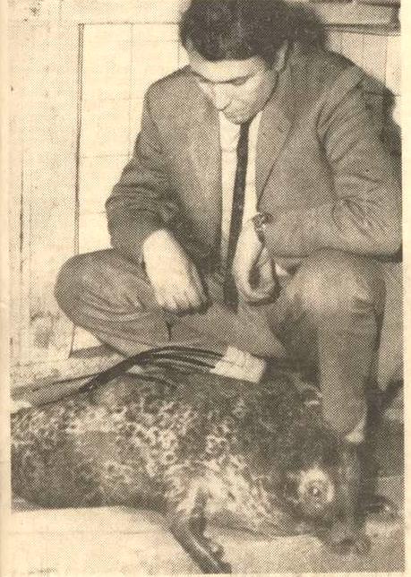 Bij onderzoek bleek, dat hel, dier minstens tweemaal met een greep, die de jongens uit een van de verzorgingsdepots hadden gehaald, in de rug was gestoken.