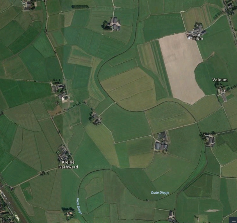 In geel aangegeven de boerderij van Enne Ennes Bazuin