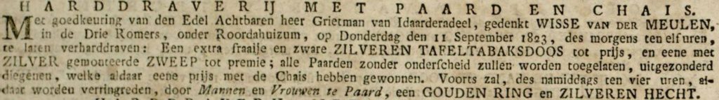 In 1823 was Wisse kastelien in de “Drie Roemers” te Roordahuizen